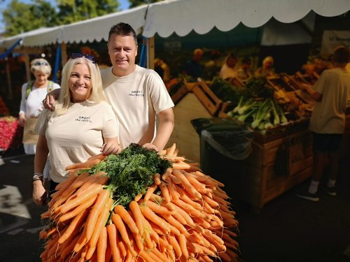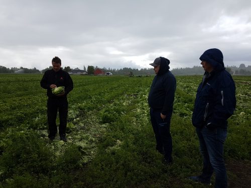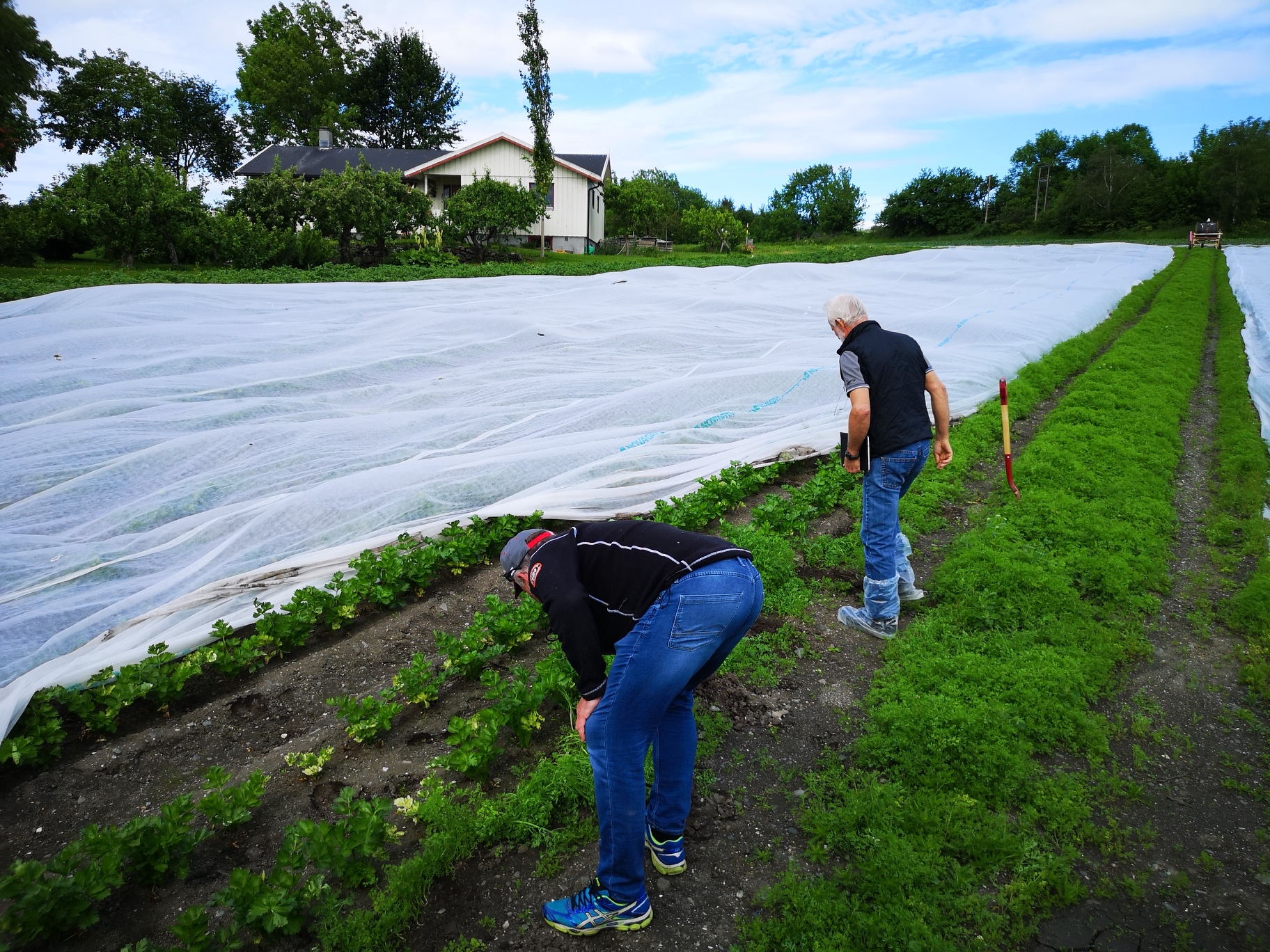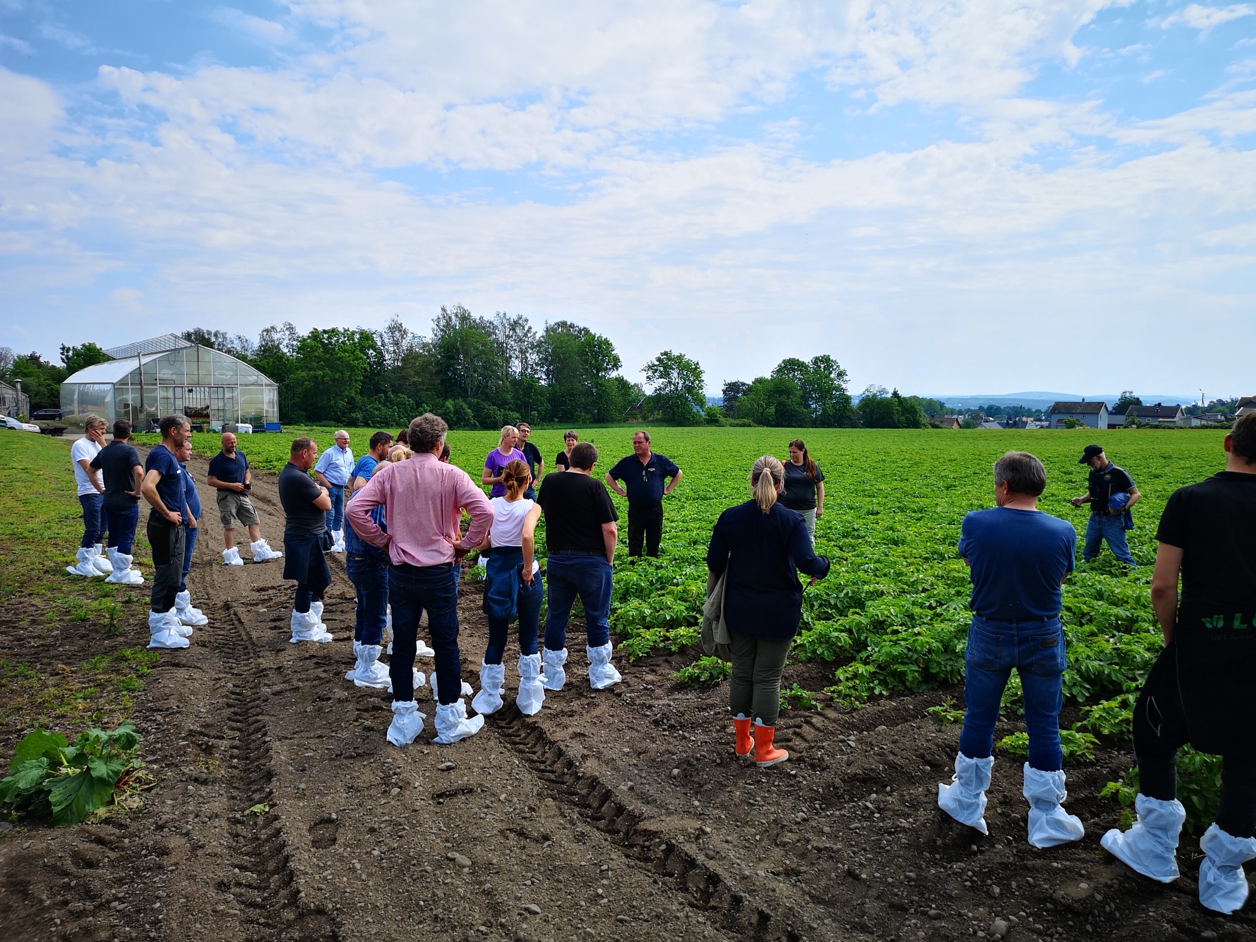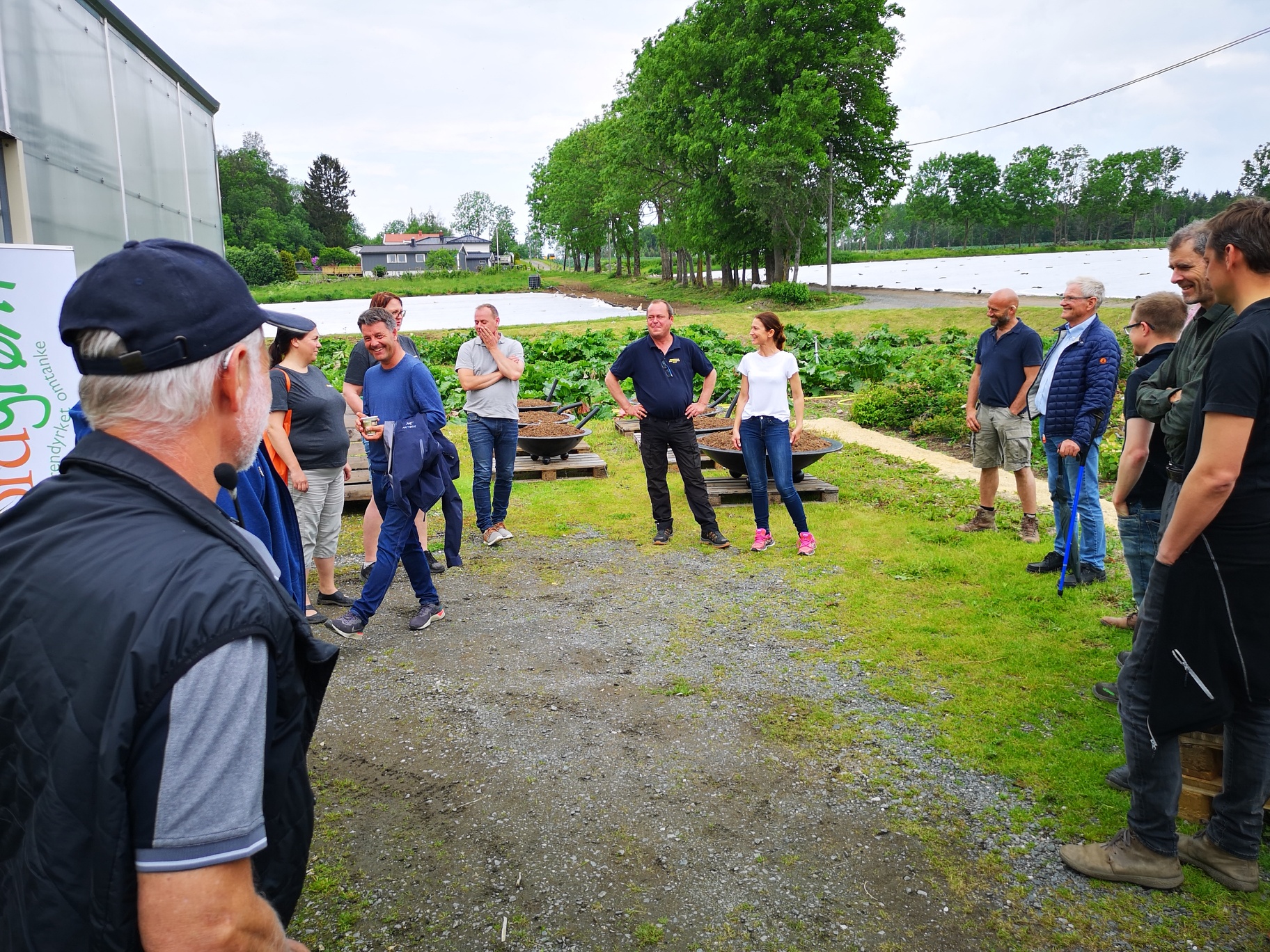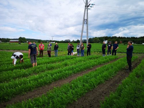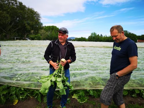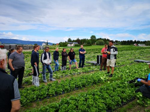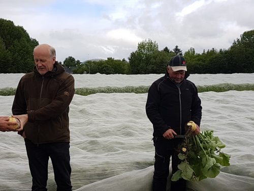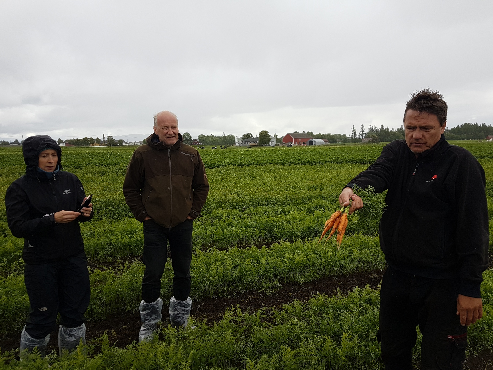 Løkbonden fikk kult besøk lørdag.. Anita Krohn Traaseth leder rådgivende utvalg for innovasjon og vekst i grøntsektoren. Hun stakk av fra Matfestivalen på Lena for å besøke et par Helter på Toten-jordene for innspill i det videre arbeidet med å styrke grøntsektoren. Anita hadde selskap av Thor Johannes Rogneby (også en ekte Helt på Jordet) og Ellen Krageberg, leder i Norges Bygdekvinnelag. Odd og Anstein (Freberg) takker for besøket og håper det var MAT-nyttig J